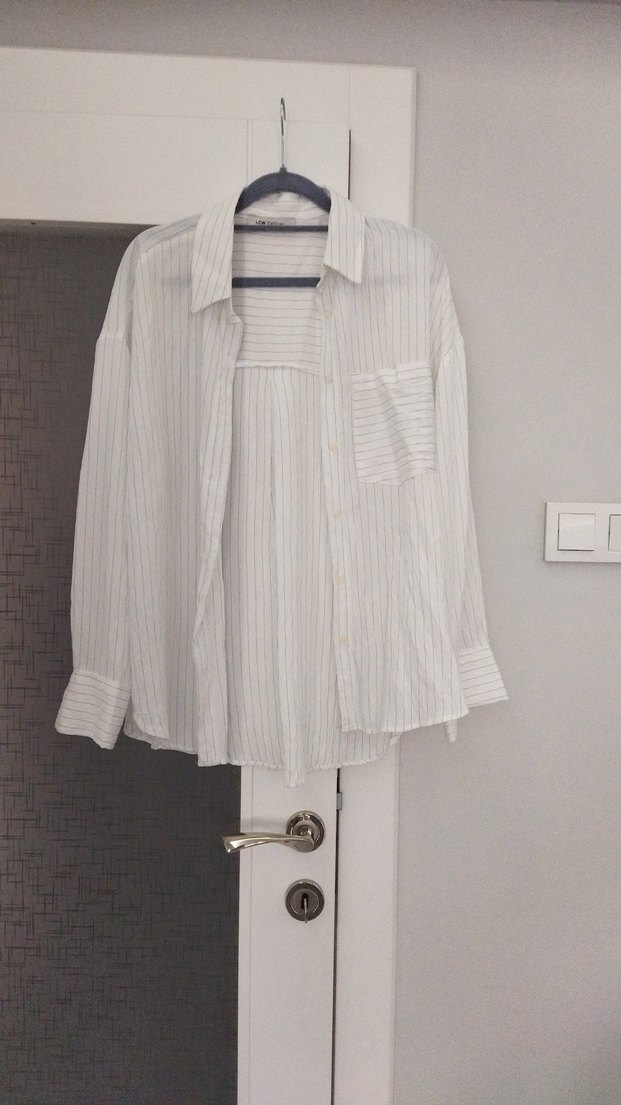Kadınlar için rahat kesim, uzun kollu, yakalı ve düğmeli keten gömlek. Çizgili deseni ve göğüs cebine sahiptir, günlük sokak stiline uygundur.