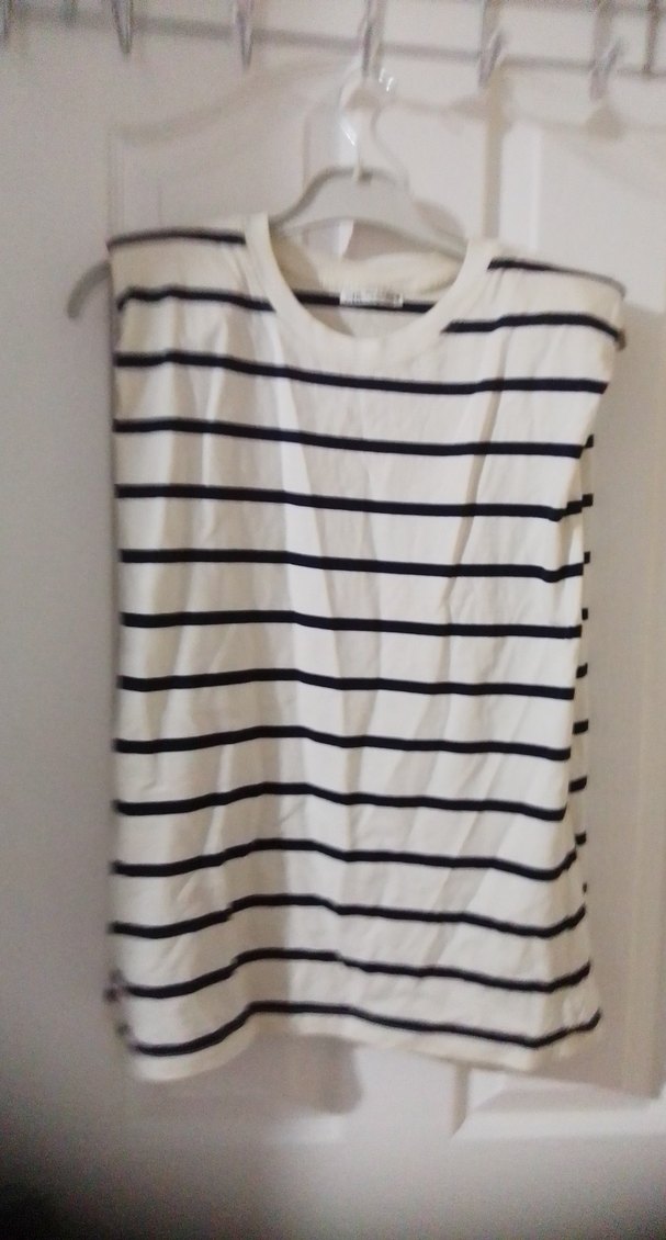 Kadınlar için kolsuz, yuvarlak yaka ve çizgili desenli pamuklu tişört. Rahat ve bol kesimiyle günlük kullanım için uygundur. Minimalist ve sokak modası tarzında.