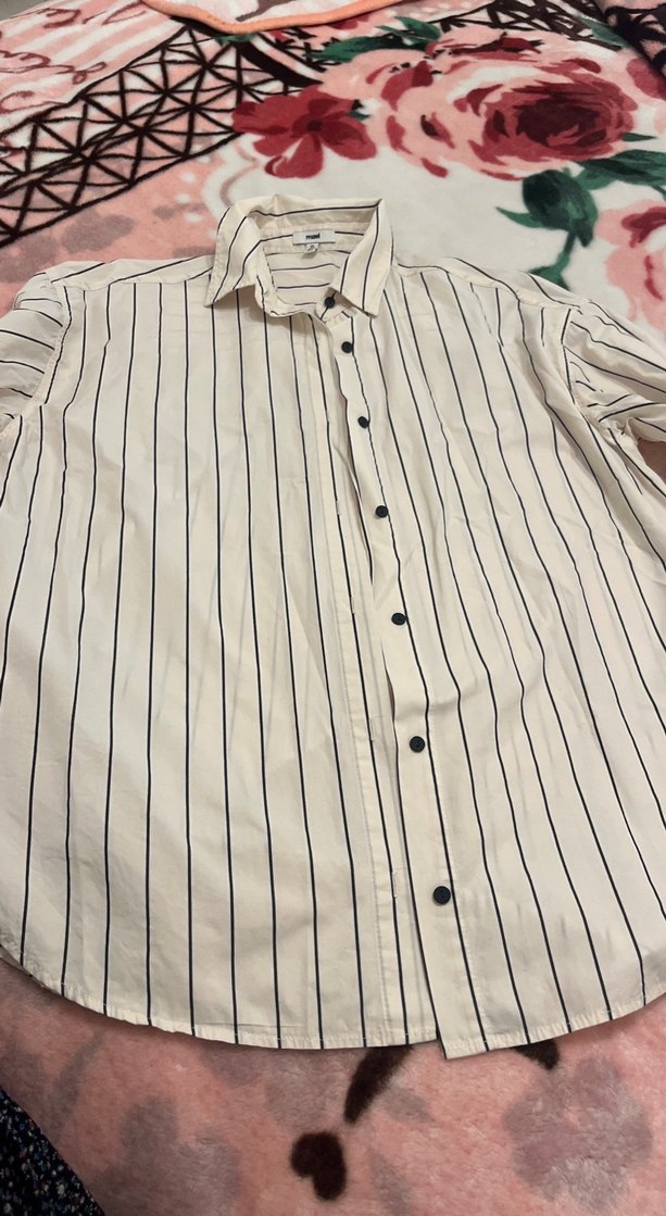 Kadın Beyaz Çizgili Pamuklu Gömlek