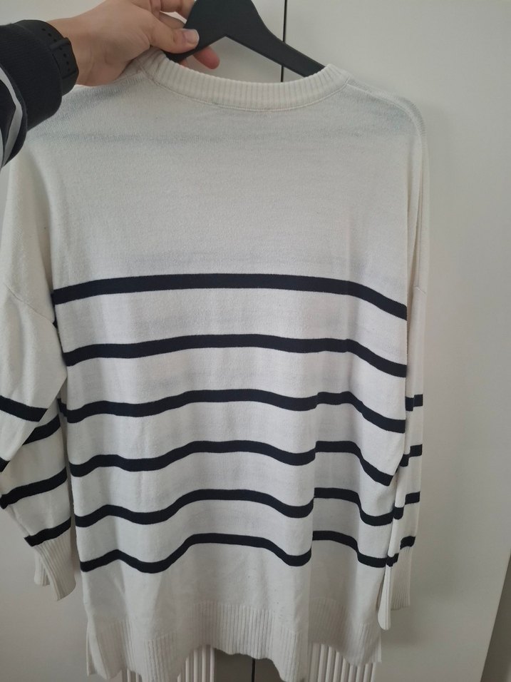 Kadın Beyaz Çizgili Pamuklu Triko Kazak