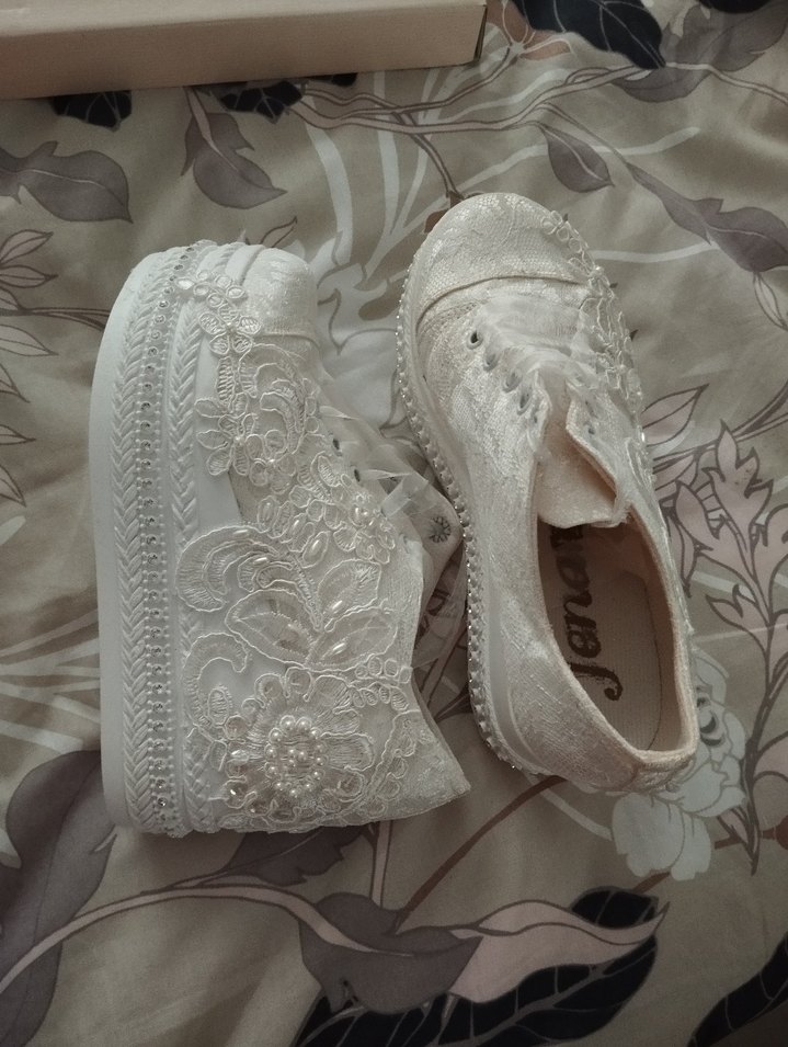 Kadın Beyaz Dantel Nakışlı Özel Ayakkabı