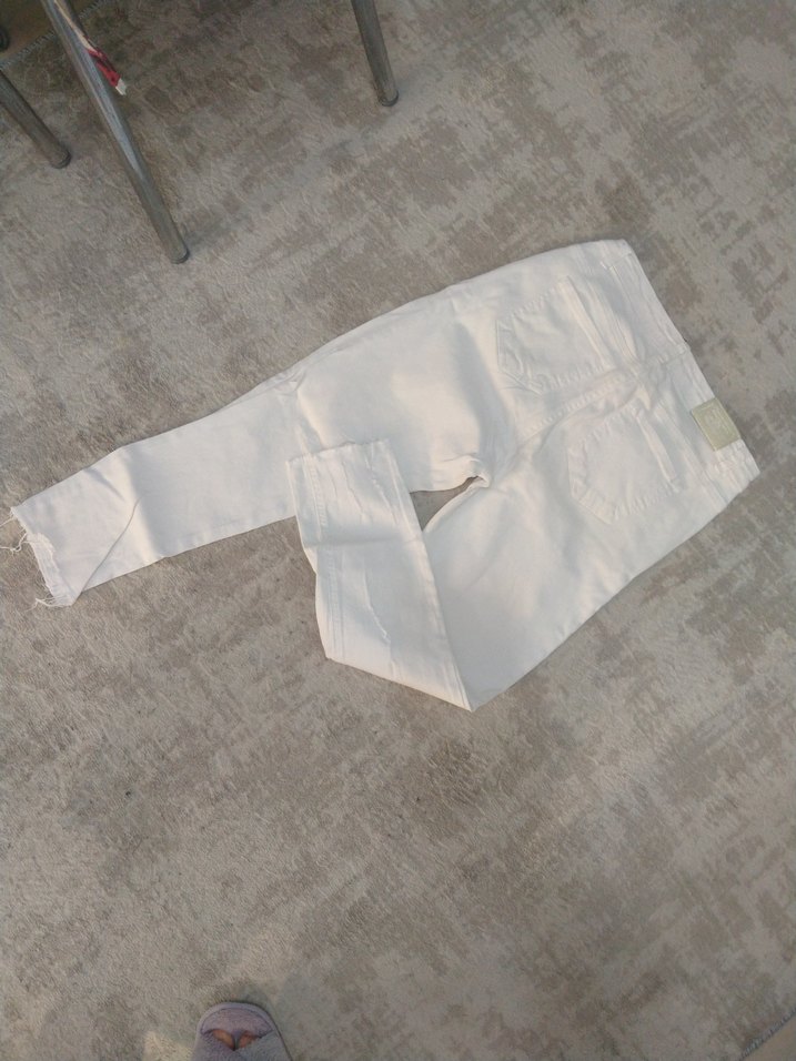 Kadınlar için beyaz Denim kumaştan, normal kesim ve midi boyda, zahmetsiz şıklık sunan dış mekan pantolonu.