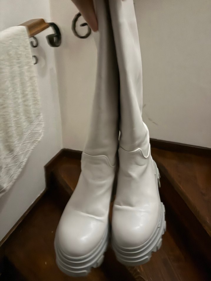 Krem rengi, çizme. Kalın tabanı sayesinde rahat bir kullanım sunar.nişantaşı ayakkabıdan alınmıştı maksimum 5 kere giyilmişti hiçbir deformesi yok biraz ağır ama rahat bir çizmedir kutusuyla gönderilecek gerçek deri değildir