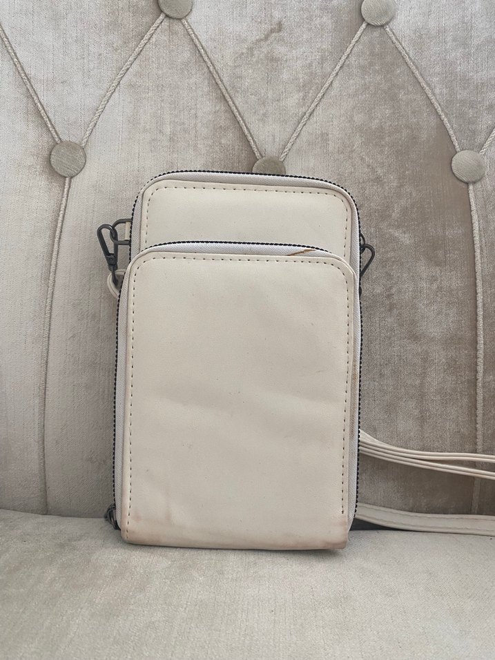 Kadın Beyaz Deri Fermuarlı Çapraz Çanta