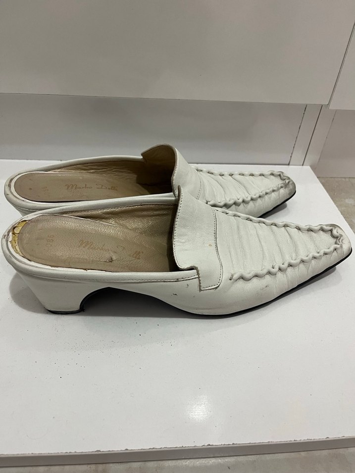 Beyaz deri, dolgu topuklu kadın loafer ayakkabı.Çok az giyildi ama eski bir ayakkabı 38 numara