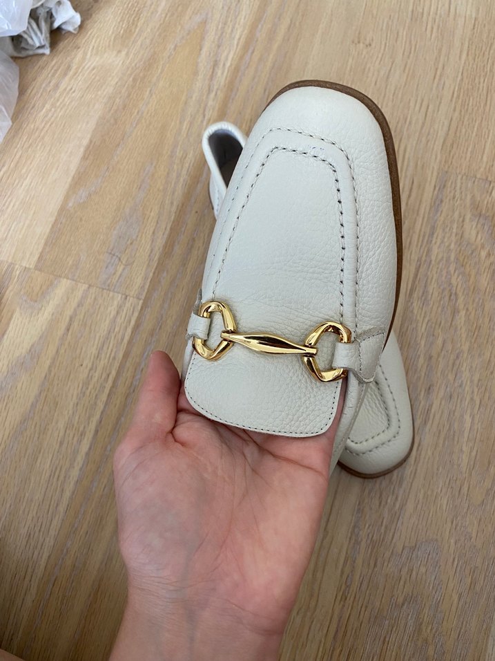 Beyaz deri, tokalı ve blok topuklu kadın loafer. Minimalist ve desensiz tasarımıyla günlük sokak stiline uygun. Straswans marka bir kere giyildi