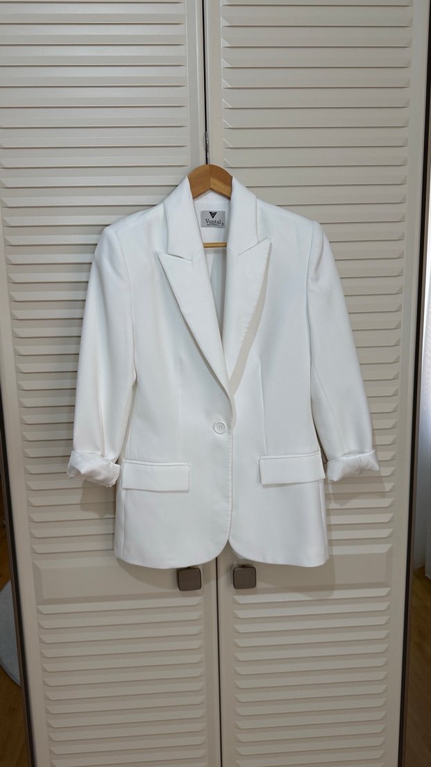 Kadın Beyaz Düğmeli Midi Blazer Ceket S beden