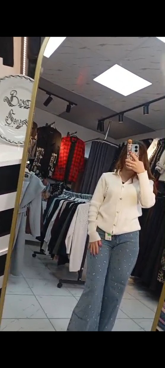 Kadınlar için beyaz renkli, düğmeli, normal boyda, rahat kesim kot pantolon. Günlük kullanım için uygundur. Bedenler mevcuttur.
