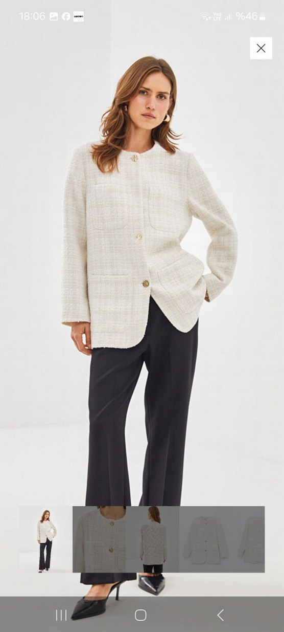 Kadınlar için normal kesim, düğmeli, yakası çentikli, uzun kollu beyaz yün ceket. Ofis ortamına uygun midi uzunlukta ve sade tasarımlı. ✨