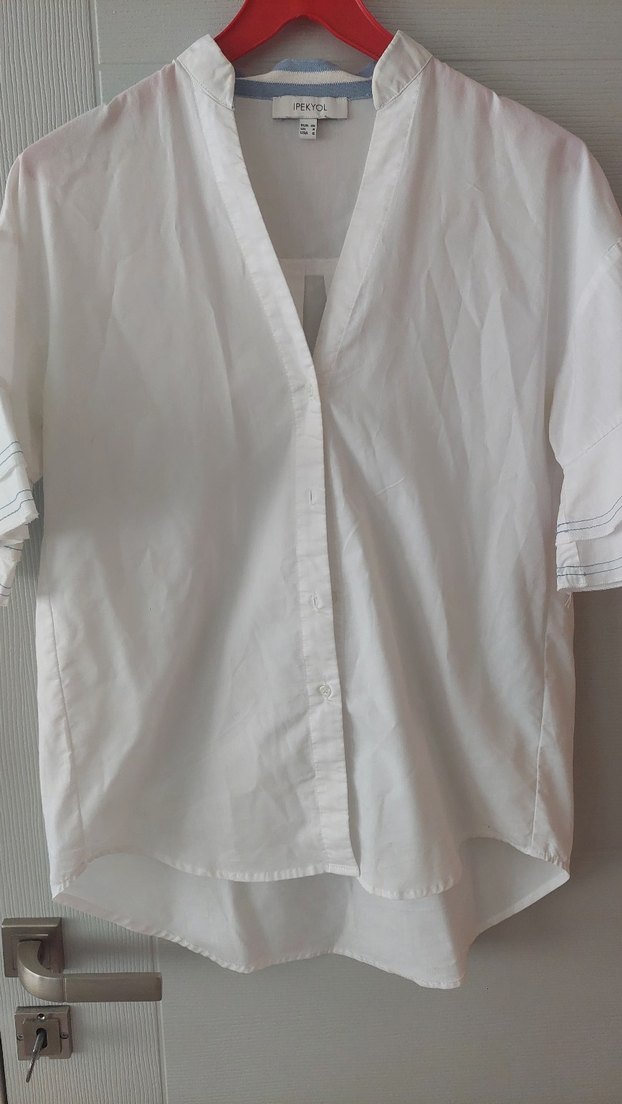 Kadınlar için kısa kollu, V yakalı ve düğmeli ön kısmıyla dikkat çeken pamuklu gömlek. Rahat kesimi ve midi boyu günlük kullanıma uygundur.