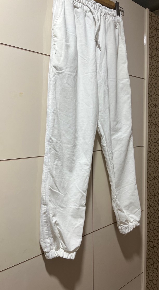 Gündelik kullanıma uygun, midi boy, rahat kesim beyaz eşofman. Lastikli paçaları ile sade ve konforlu athleisure tarzı sunar. S ve M beden uyumlu.