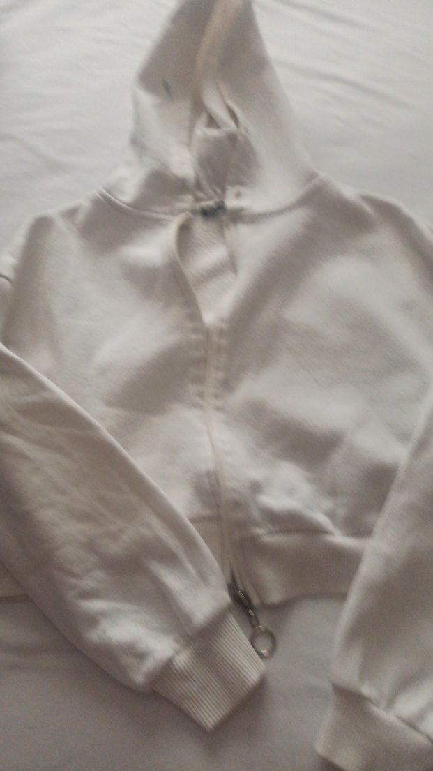 Kadınlar için fermuarlı, kapüşonlu ve uzun kollu, vücuda oturan beyaz sweatshirt. Yumuşak ve sıcak dokusu günlük kullanım için uygundur. ☁️