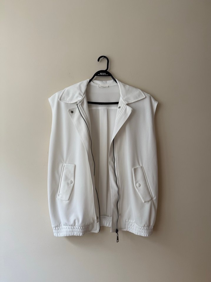 Kadın Beyaz Fermuarlı Kolsuz Yelek