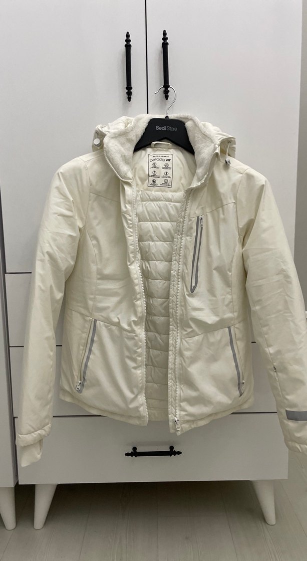 Kadın Beyaz Fermuarlı Sokak Stili Ceket