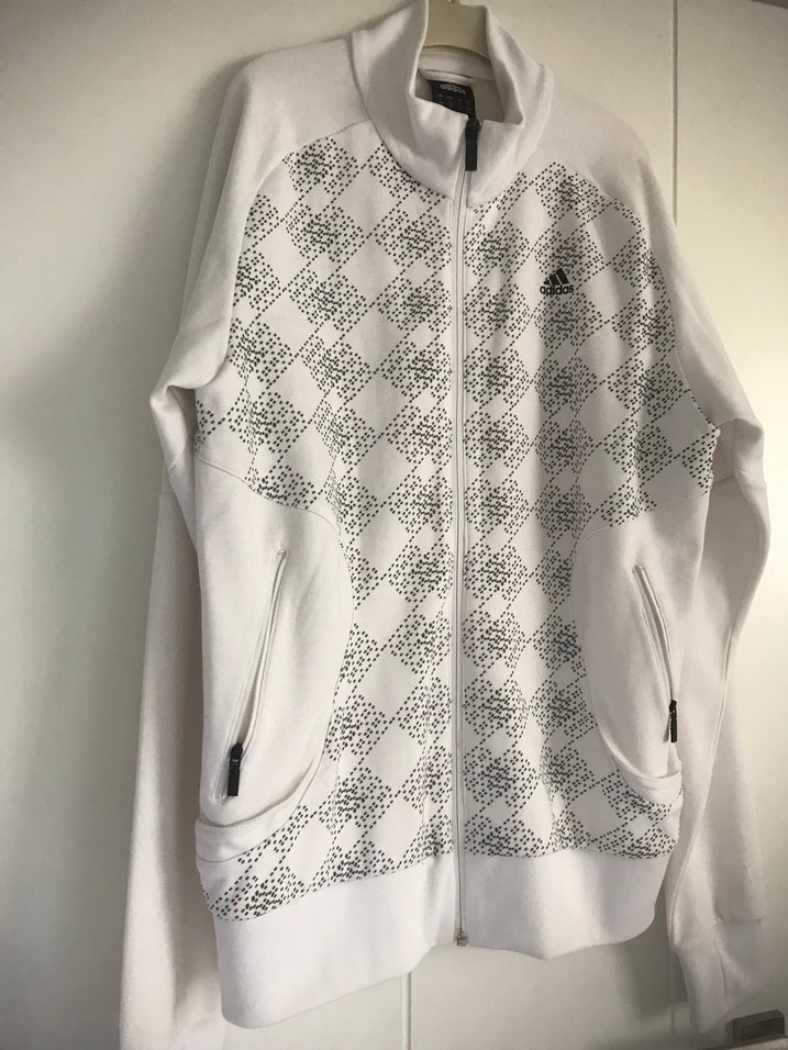 Kadınlar için beyaz, gri baskılı sentetik kumaştan, fermuarlı, uzun kollu ve yüksek yakalı, günlük sokak stili için uygun dar kesim ceket….orijinaldir