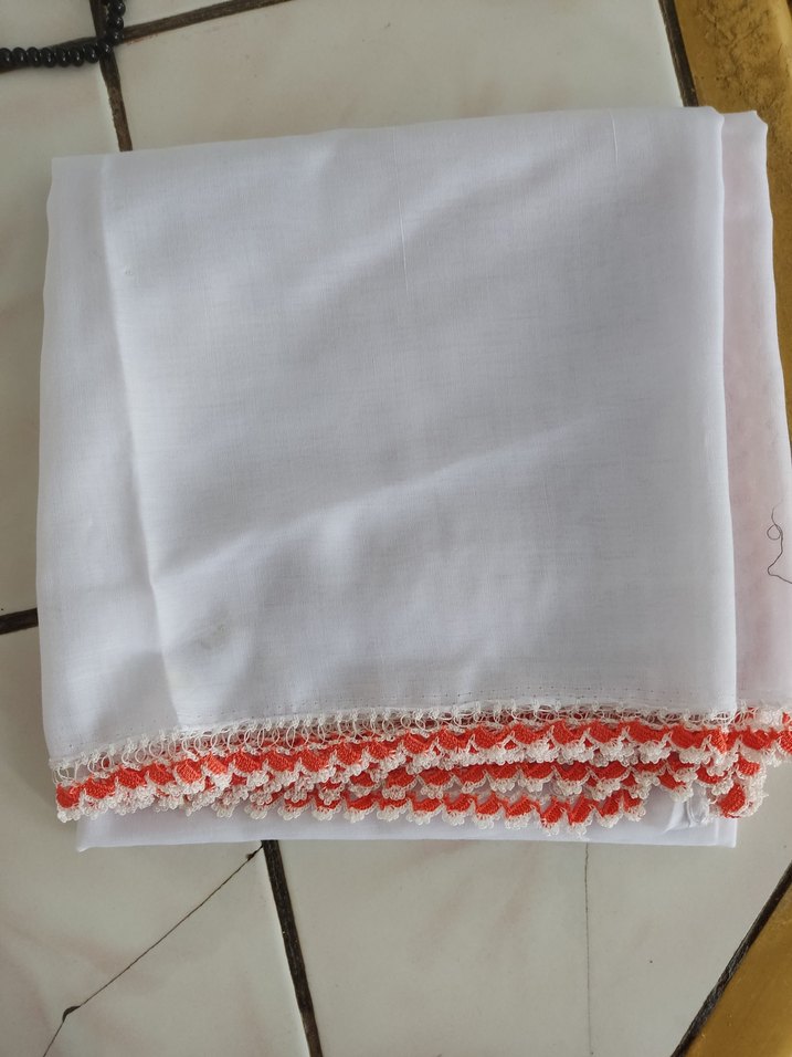 Kadın beyaz şal, yumuşak tekstil kumaştan ve parlak görünümlü fırfırlı kenarlarla sade ve minimal bir tarza sahip.