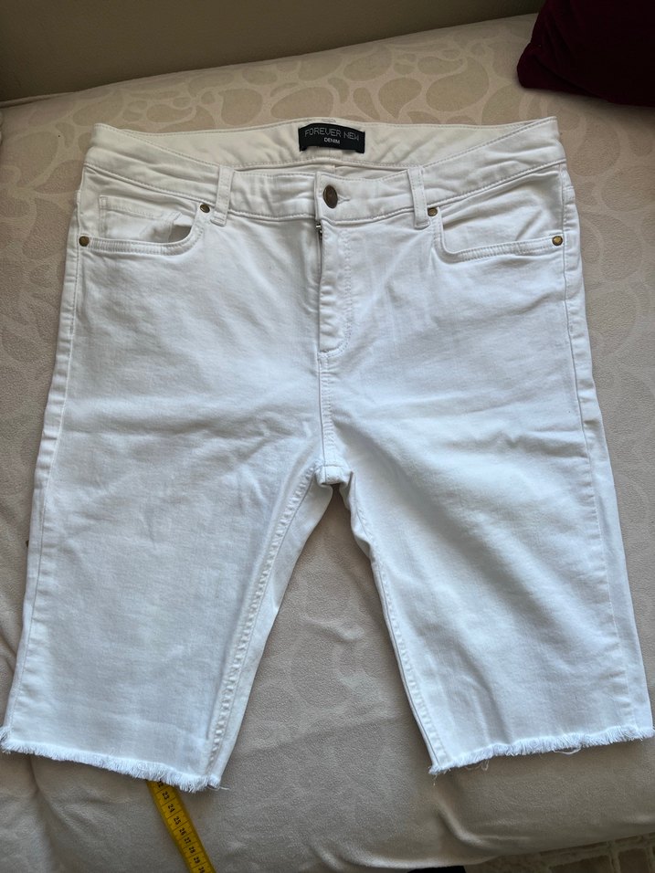 Beyaz denim şort, regular fit ve mini boyda. Günlük kullanım için rahat ve desen içermeyen sokak stili. Kenarları kesik, zahmetsiz şıklık sunar.