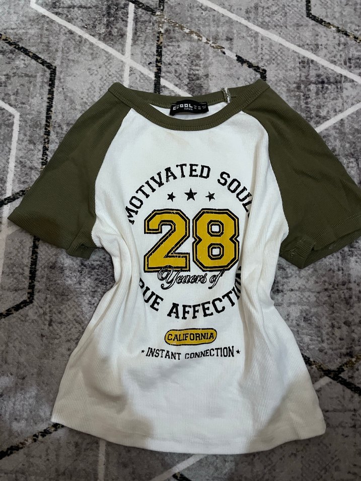 Kadın tişörtü, kısa kollu ve yuvarlak yakalıdır. Pamuk kumaştan olup, 28 sayısı ve California yazılı baskıya sahiptir. Günlük rahat kullanım için idealdir.