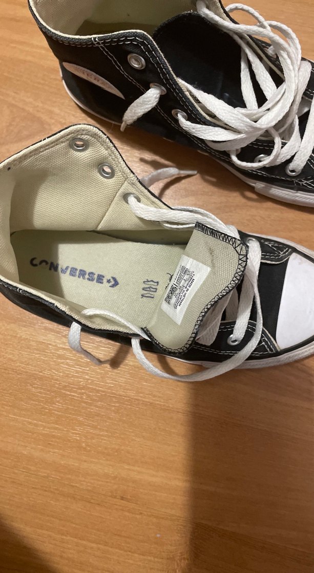 Beyaz ve gri kadın spor ayakkabısı, dolgu topuklu ve tokalı detaylı, kauçuk tabanlı. Converse tarzı, rahat athleisure görünümlü.