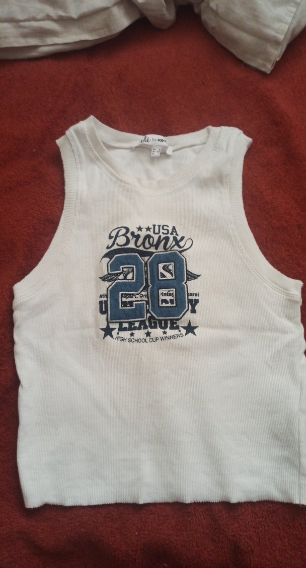 Fitilli, beyaz renkli, kolsuz, halter yakalı. Rahat kesimi ile sokak stili için uygundur. Yenidir hiç giymedim denemeden aldığım için olması kusursuzdur