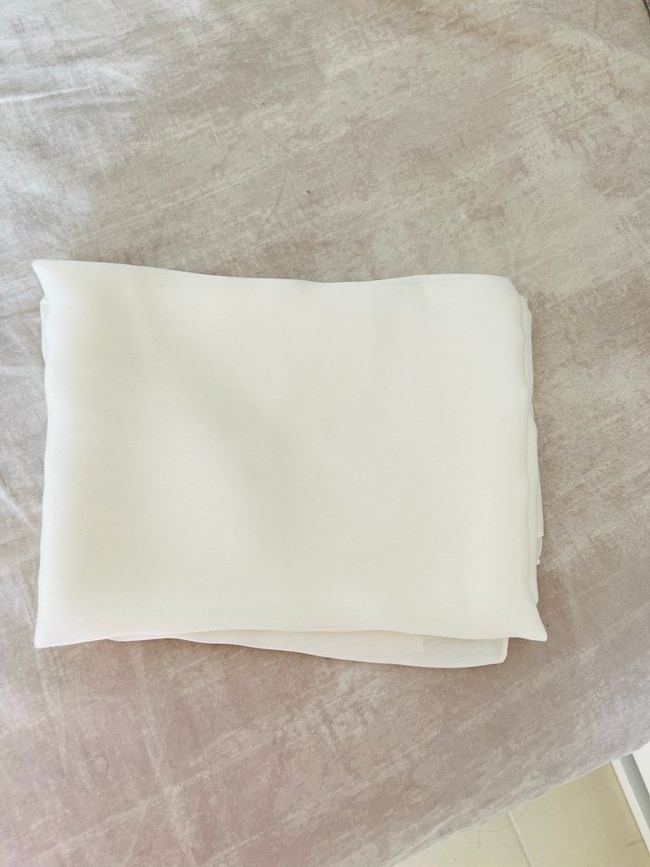 Yumuşak dokulu, beyaz ipek şal, sade ve bohem tarzda, pastel tonlarda, hafif drapeli. Abiye şalı