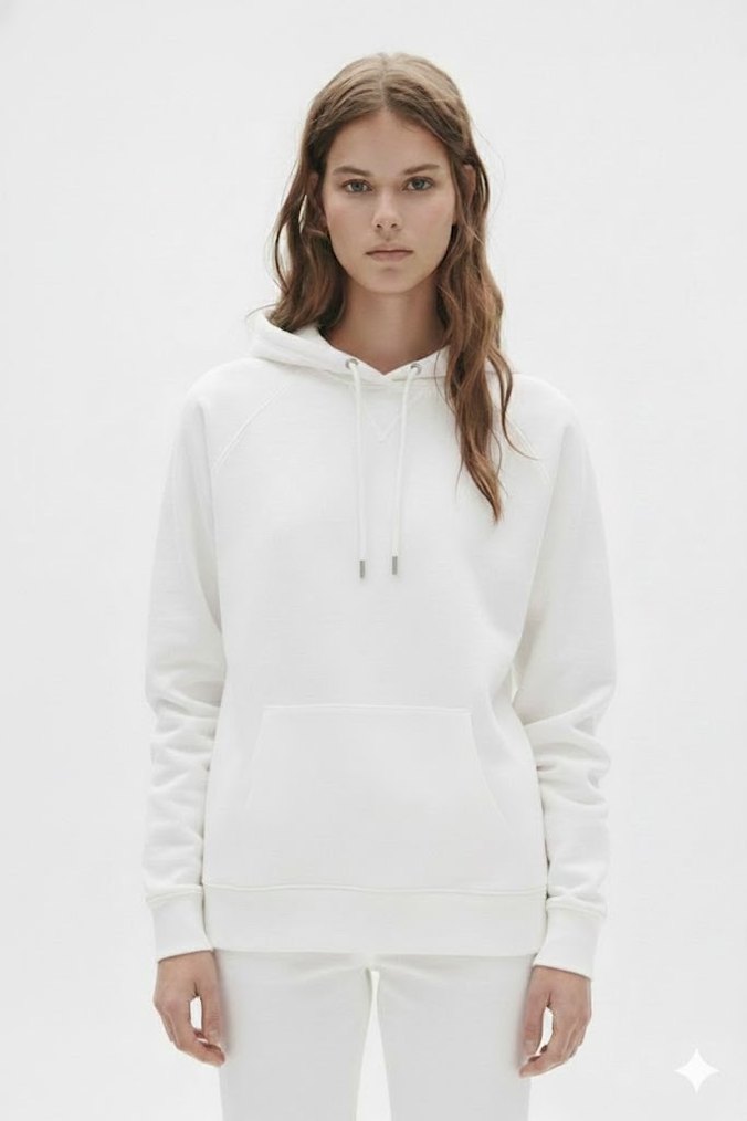 Kadın Beyaz Kapüşonlu 3 İplik Şardonlu Sweatshirt