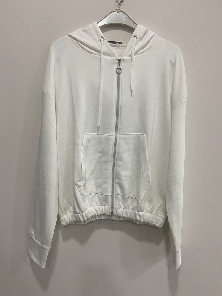 Kadın Beyaz Kapüşonlu Fermuarlı Sweatshirt