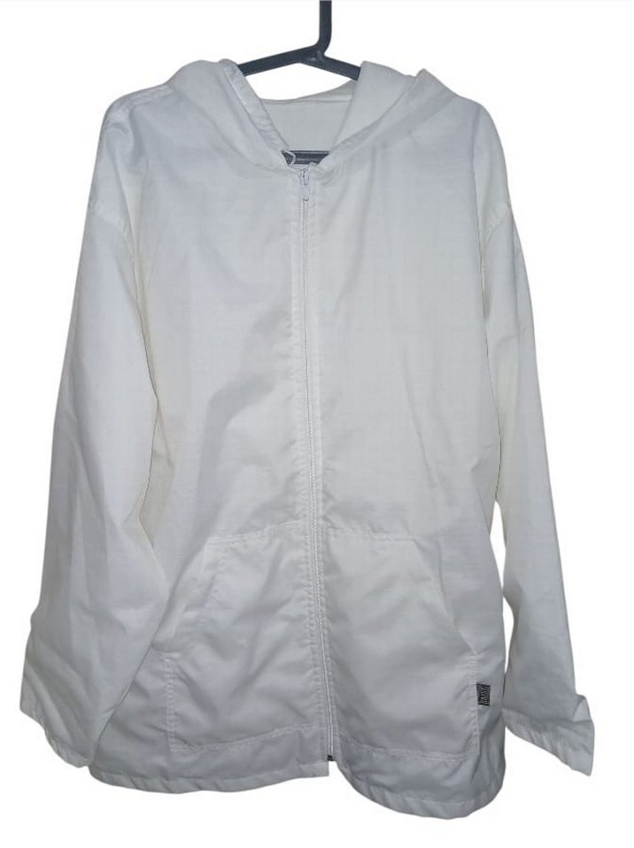 Kadın Beyaz Kapüşonlu Fermuarlı yağmurluk