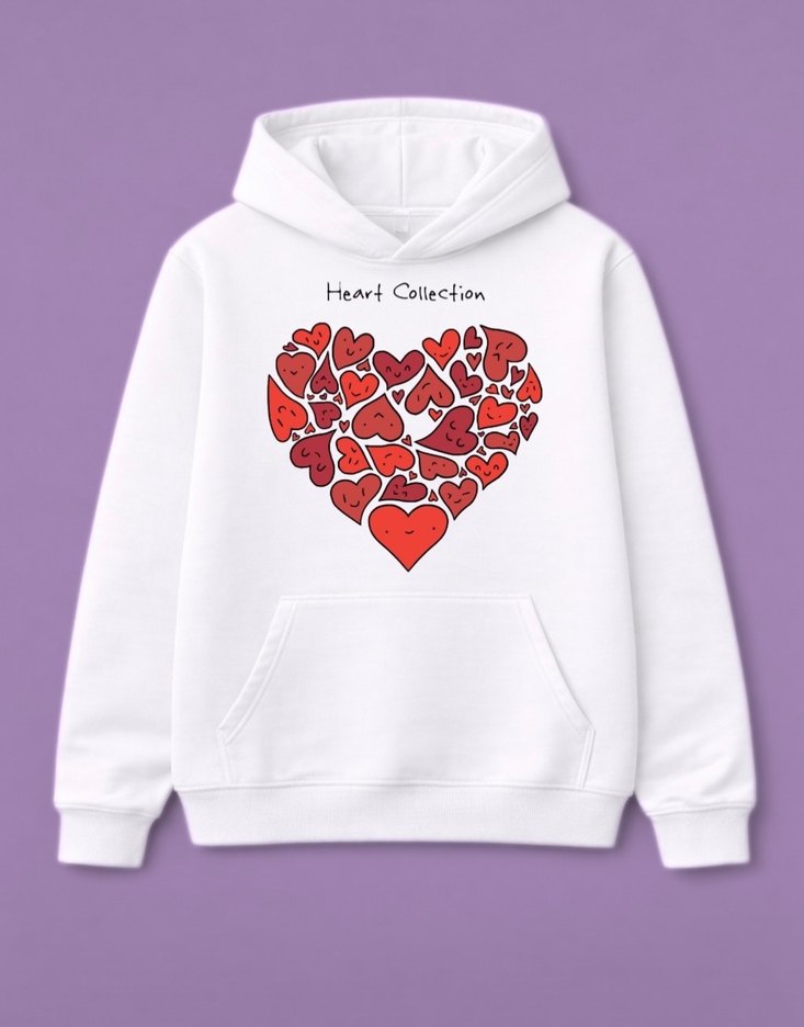 Pamuklu, kapüşonlu ve uzun kollu bu beyaz sweatshirt, bol kesimdir. "Heart Collection" yazılı kalp baskısı ile rahat ve şık. ❤️ HER BEDENİ MEVCUTTUR UNİSEX
