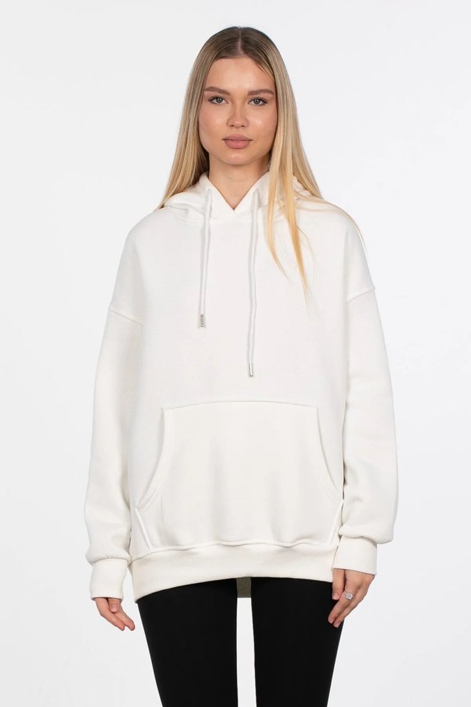 Kadın Beyaz Kapüşonlu Rahat Sweatshirt