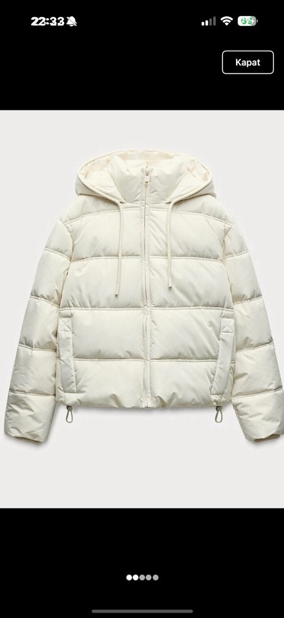 Kadınlar için beyaz kapüşonlu, şişme ve orta boy uzunlukta mont. Yumuşak kumaştan, fermuarlı ve günlük kullanıma uygun rahat tasarım. ❄️