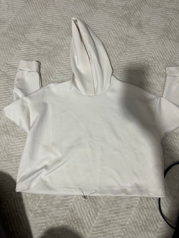 Kadınlar için kapüşonlu, uzun kollu ve vücuda oturan kesime sahip beyaz sweatshirt. Yumuşak ve sıcak kumaştan, günlük rahat kullanıma uygun sokak tarzı ürünü. Dolabımı boşalttığım için satıyorum makul fiyatlara satacağım