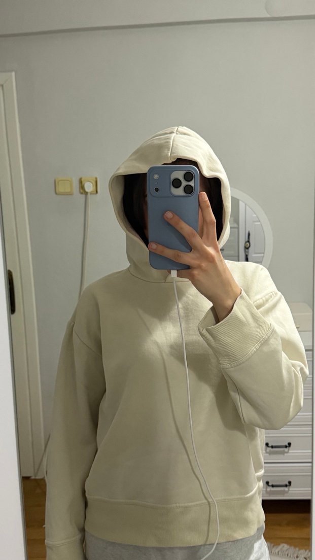 Kadın Beyaz Kapüşonlu Sweatshirt