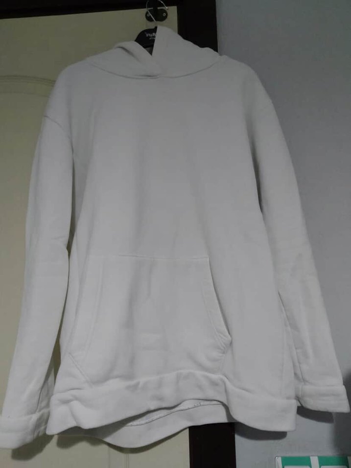 Kadınlar için beyaz, kapüşonlu sweatshirt, yuvarlak yaka ve uzun kollu. Yumuşak ve sıcak kumaştan, rahat kesimli, ön cepli.temizdir