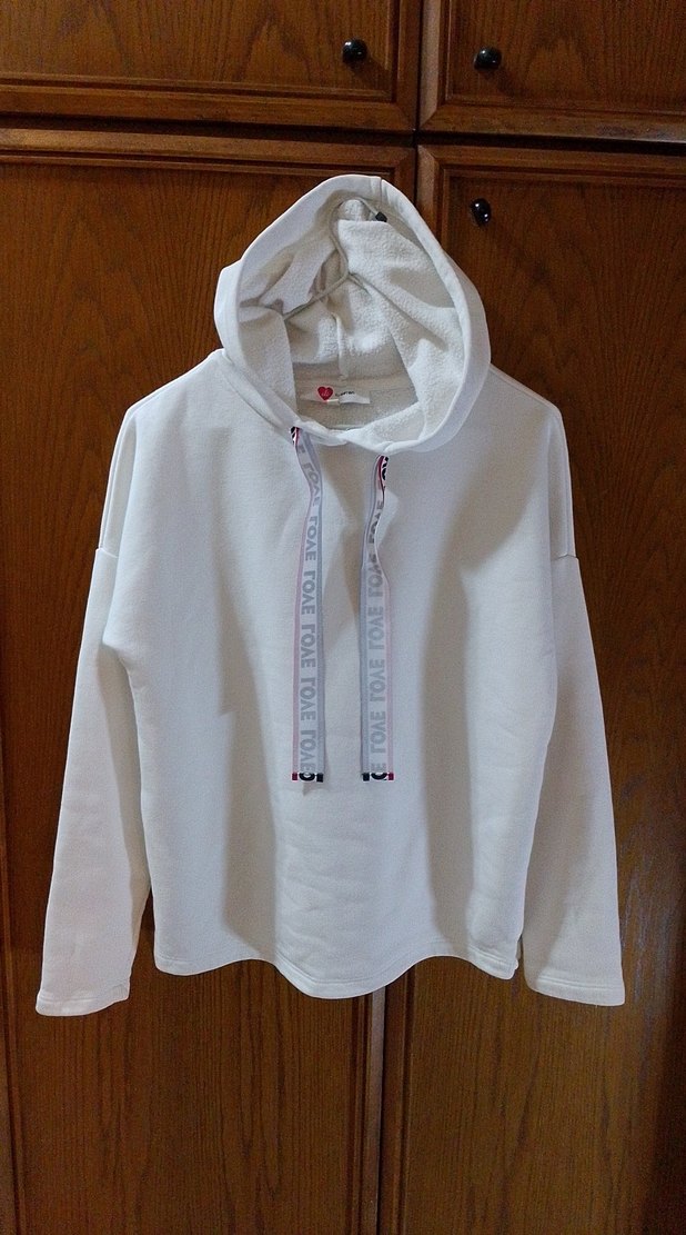 Bu beyaz kapüşonlu sweatshirt, nakış detayları ve bol kesimiyle yumuşak ve sıcak kumaştan üretilmiştir. Günlük kullanım için rahat bir sokak stili sunar. S Beden
