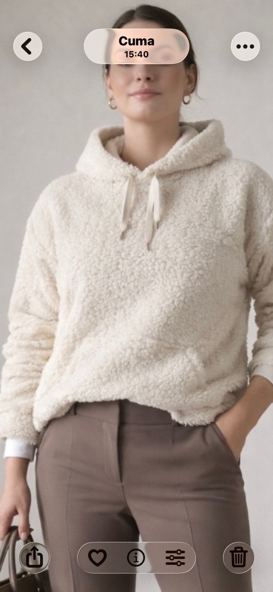 Kadınlar için beyaz, uzun kollu, kapüşonlu yumuşak dokulu, normal uzunluğundan daha uzun sweatshirt. Rahat sokak stili için uygundur. Kol altından diğer kol altına kadar olan eni:57cm Omuz başından etek ucuna kadar al oğlan boyu 85cm Yapay zeka ile giydirilmiştir
