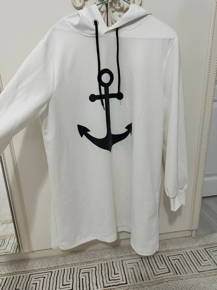 Kadınlar için uzun kollu, kapüşonlu ve bol kesim pamuk kumaştan yapılmış sweatshirt. Önde baskılı çapa deseni ve zincir detayları bulunur. Rahat günlük kullanım için uygundur.