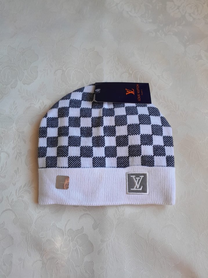Kadın Beyaz Kareli Örgü Bere