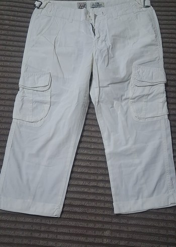 Kadın beyaz Kemerli Bol Kesim Midi Pantolon