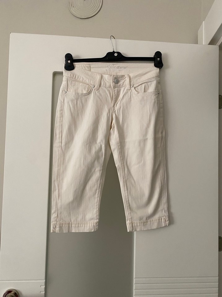Kadınlar için beyaz pamuklu bermuda şortlar, regular fit ve kemerli bel ile günlük ve sokak tarzına uygundur. Kısa boy ve desensizdir. Loft marka s beden likralı defosu yoktur.
