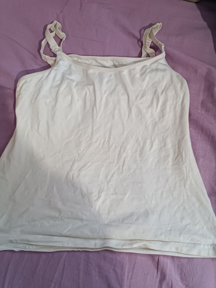 Kadınlar için beyaz keten kumaştan yapılmış, askılı ve vücuda oturan basic emzirme Atleti ve sütyeni. 90 beden