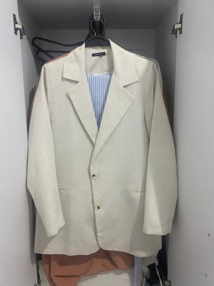 Kadın Beyaz Keten Düğmeli Blazer Ceket