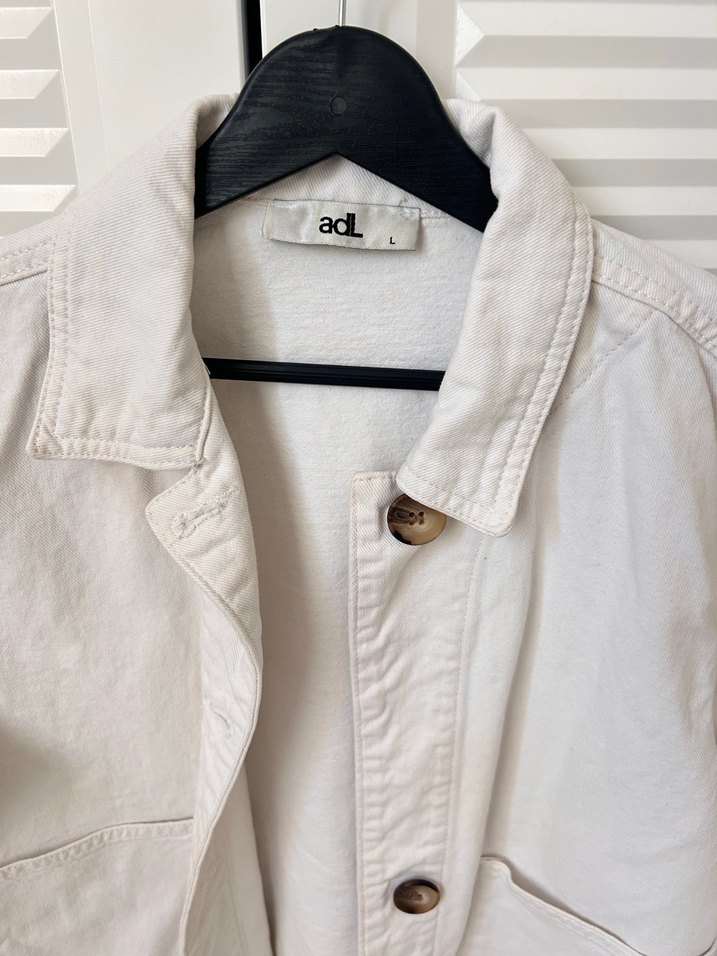 Kadın Beyaz Keten Düğmeli Ceket