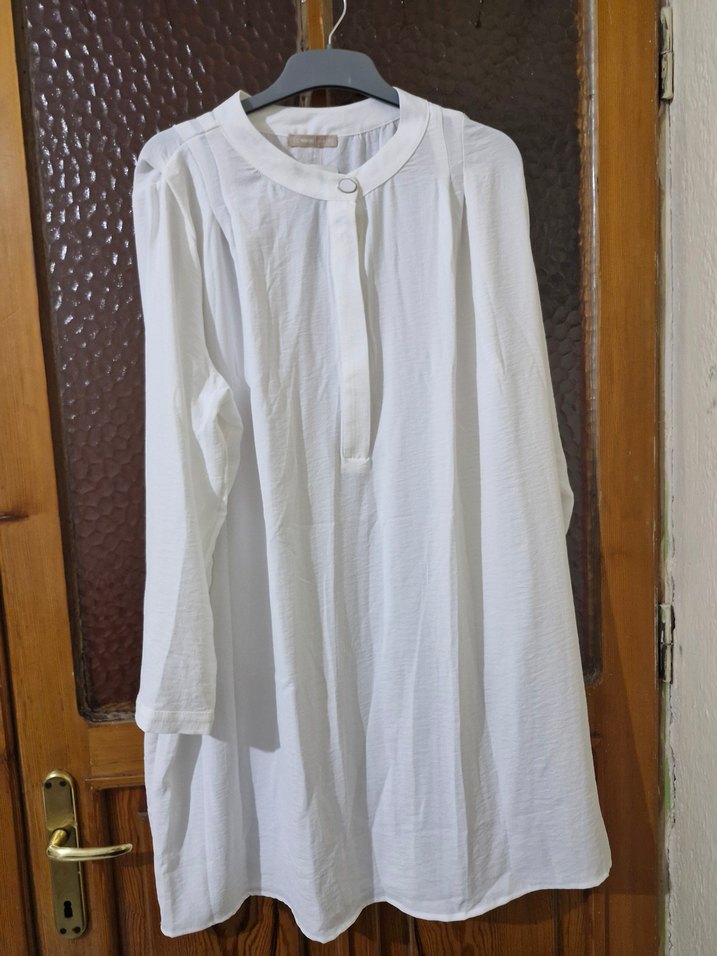 Kadın Beyaz Keten Düğmeli Uzun Kollu Gömlek