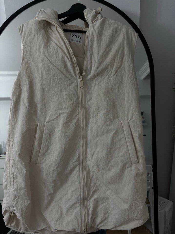 Kadınlar için keten kumaştan, fermuarlı, kolsuz, yüksek yakalı ve midi boy rahat kesim yelek. Minimalist ve sokak stiline uygun günlük kullanım için idealdir. Oversize kesi 40-42 uyumlu