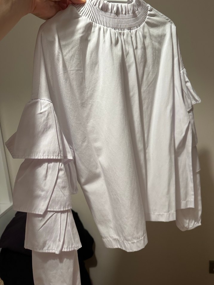Kadın Beyaz Keten Fırfırlı Bluz