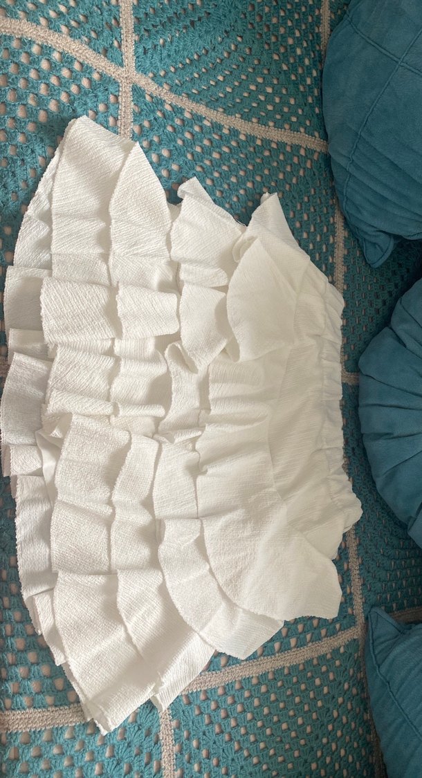 Beyaz keten kumaştan, nakış detaylı ve fırfırlı katmanlara sahip bol kesim mini etek. Bohem tarzda, günlük kullanım için uygundur.