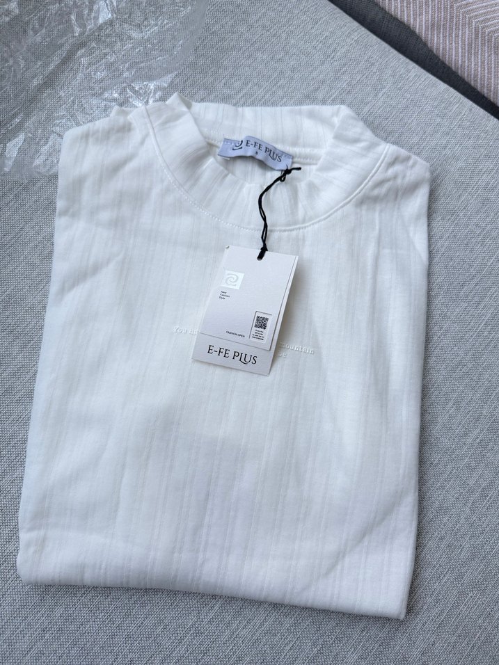 Beyaz keten kumaştan, kısa kollu, yuvarlak yakalı, bol kesim kadın bluz. Pliseli dokusu ve normal boyu ile günlük kullanıma uygundur. Marka: E-FEPLUS.