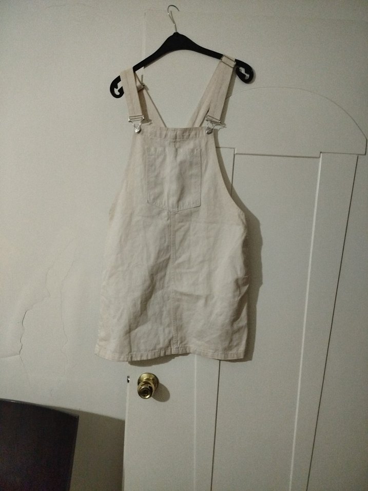 kadınlar için beyaz keten midi uzunlukta, kolsuz, geniş kesim ve halter yakalı elbise Minimalist ve rahat sokak stili için uygundur.
