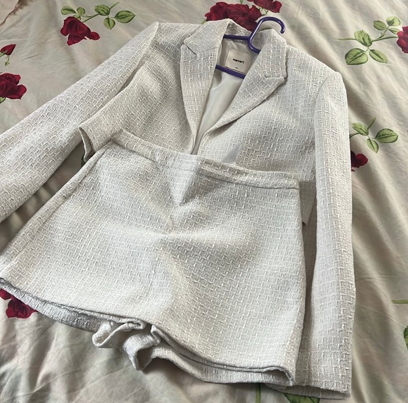 Kadın Beyaz Keten Mini Blazer takım